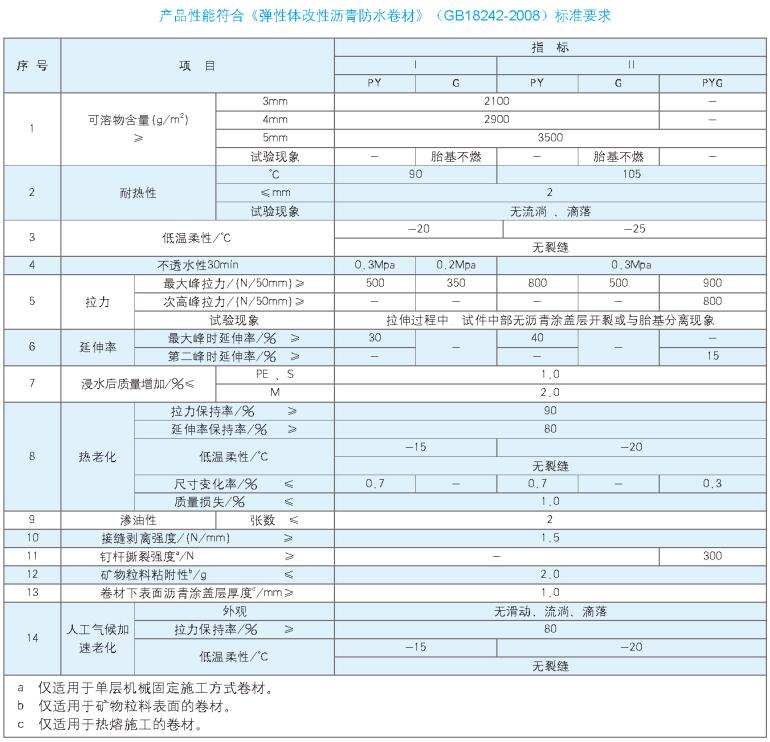 弹性体(SBS)改性沥青防水卷材是以聚酯毡、玻纤毡、玻纤增强聚酯毡为胎基,以苯乙烯-丁二烯-苯乙烯(SBS)热塑性弹性体做石油沥青改性剂,两面覆以隔离材料所制成的防水卷材。