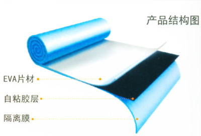 EVA高分子复合自粘防水卷材,采用合成高分子EVA复合片材为胎基或表面材料,高聚物、改性沥青为基料,复合而成的新型具有优良防水性能的合成高分子防水卷材。兼有高分子防水卷材和自粘防水卷材的防水性能。
