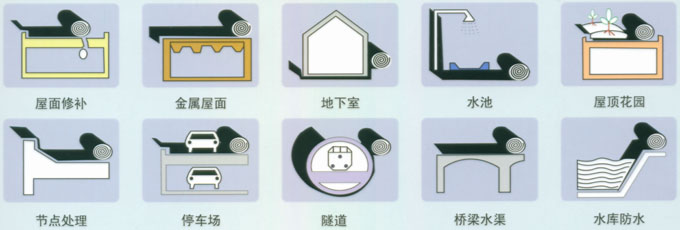 使用范围:工业与民用建筑的屋面、地下室、隧道、桥梁、水渠、堤坝、人防工程、军事设施等防水、防渗、防潮工程。 |