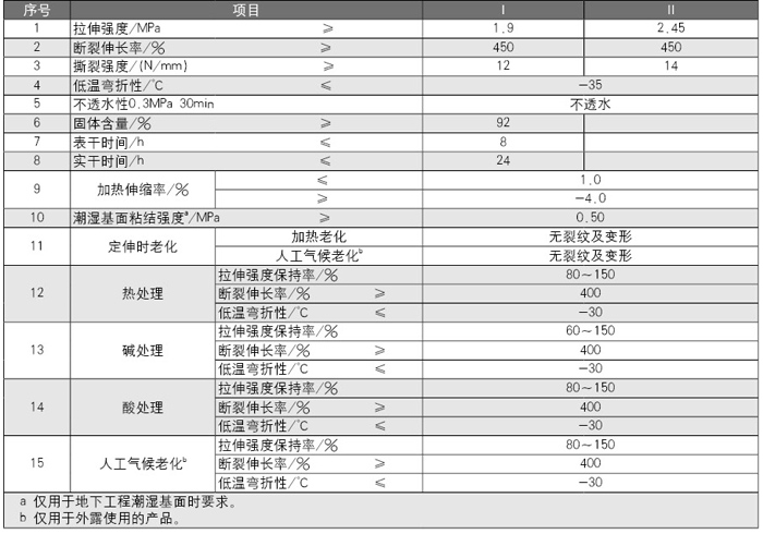 (2) 防水涂膜延伸率大、强度、弹性好。