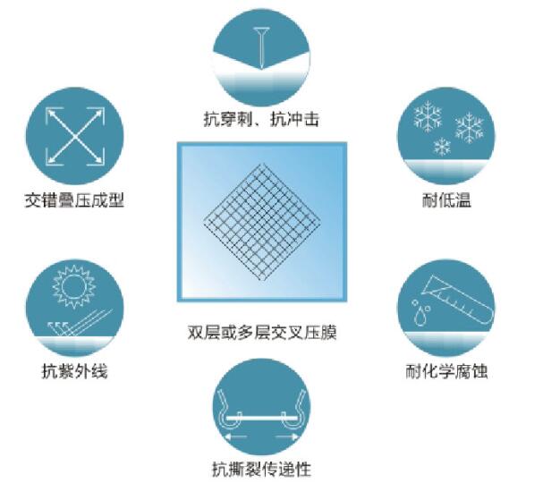 1、强力双层叠加薄膜,具有更高的撕裂强度和尺寸稳定性,防水性能更优于普通薄膜。
